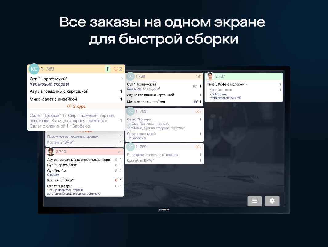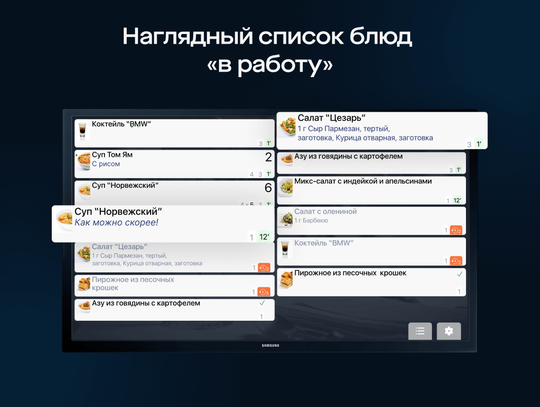 Информационная доска задач для повара на планшете или телевизоре. Контроль времени приготовления и отметки о готовности блюд. Read more