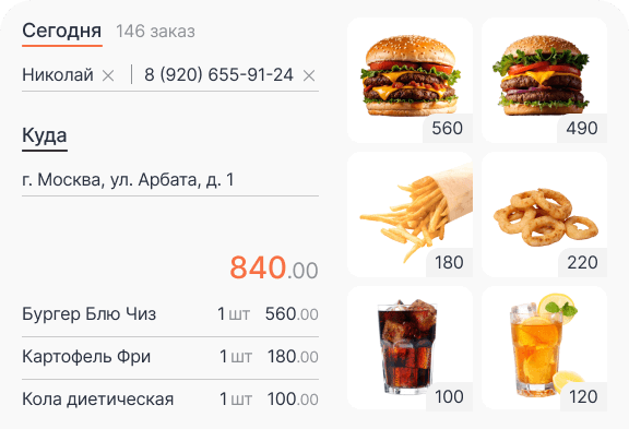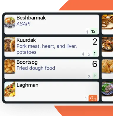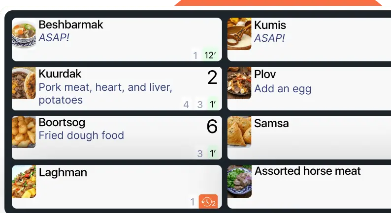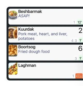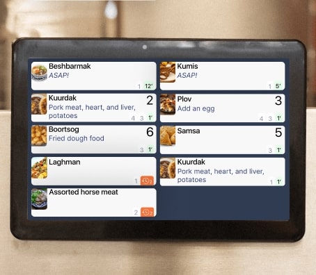 chefs accept new orders with comments from guests, with dish recipes and images always at hand.