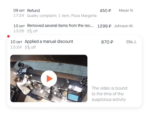 Presto informs about all cashier actions: manual discounts, editing the number of items, deleting items from the receipt and refunds