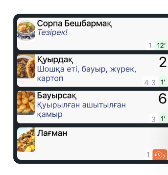 тапсырыс туралы хабарлама - аспаз үшін, дайындық туралы хабарлама - даяшы үшін