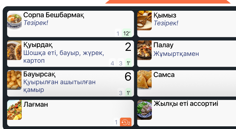тапсырыстар залдан, жеткізу қызметтерінен және кез келген басқа арналардан түседі