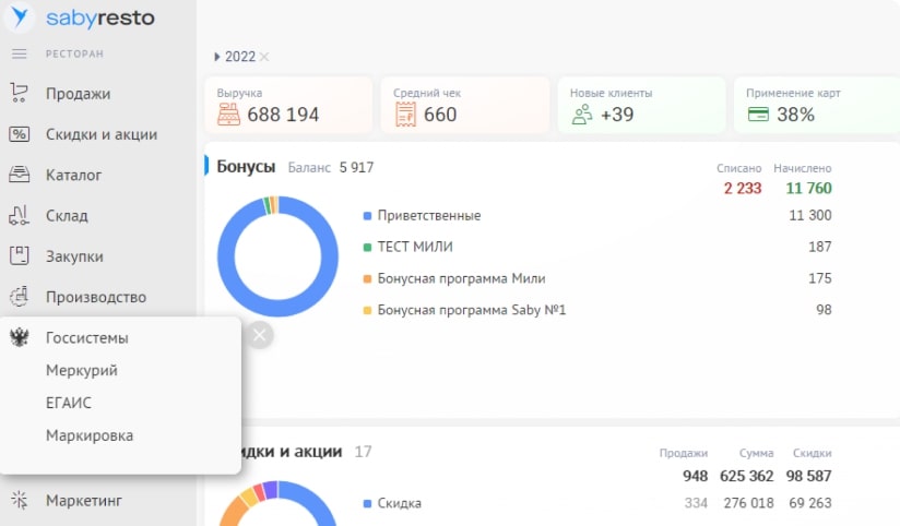 - работа со скидками и акциями.
