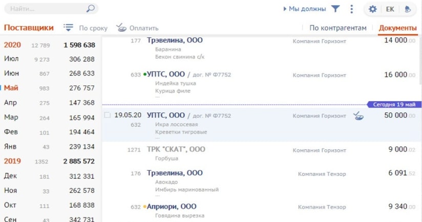 Работать с электронными документами можно в специальной программе на компьютере, например в Setty, или скачать на телефон приложение для инвентаризации и складских операций. Программа сама следит за остатками продуктов, вовремя создает заказы на поставку и контролирует сроки оплаты. Вы можете быстро настроить в системе, на какой день надо переводить оплату поставщику, — она внесет дату и сумму оплаты в календарь.