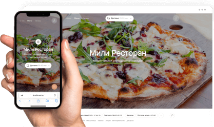 Визитка — одностраничный сайт с фотографиями и видео заведения, меню, спецпредложениями и адресом. Такой формат подходит для небольших кафе без доставки. Здесь главная задача — ответить на основные вопросы потенциальных посетителей: как выглядит заведение, что там можно заказать, сколько это стоит, где кафе находится и какой у него режим работы.