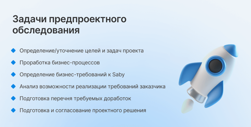 После формирования команды мы переходим к предпроектному исследованию: от целей и задач проекта, которые могут уточняться в процессе, до проработки бизнес‑процессов и определения финальных бизнес‑требований. На выходе специалисты Setty формируют единый план‑график, то есть дорожную карту внедрения со сроками, этапами и описанием результата.