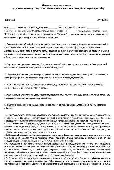 Заключить с сотрудниками и контрагентами соглашения о неразглашении коммерческой тайны (NDA).