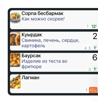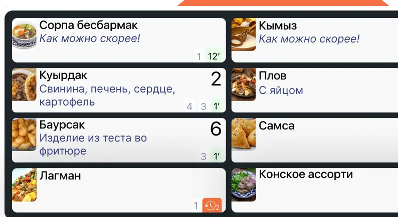 повару озвучат новый заказ с пожеланиями гостя, а технология приготовления и фото блюда всегда под рукой.