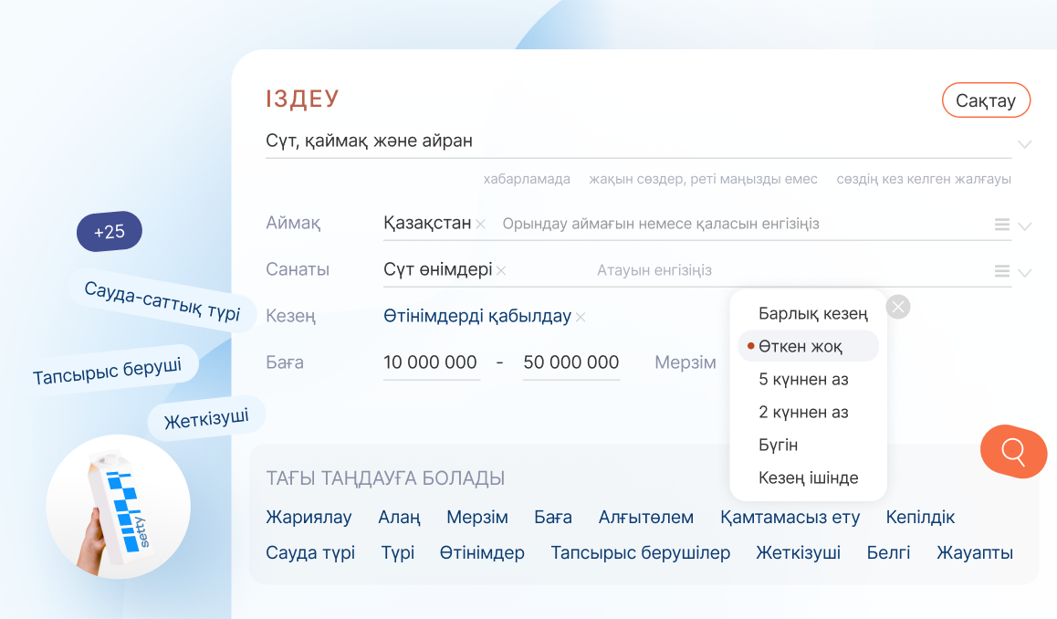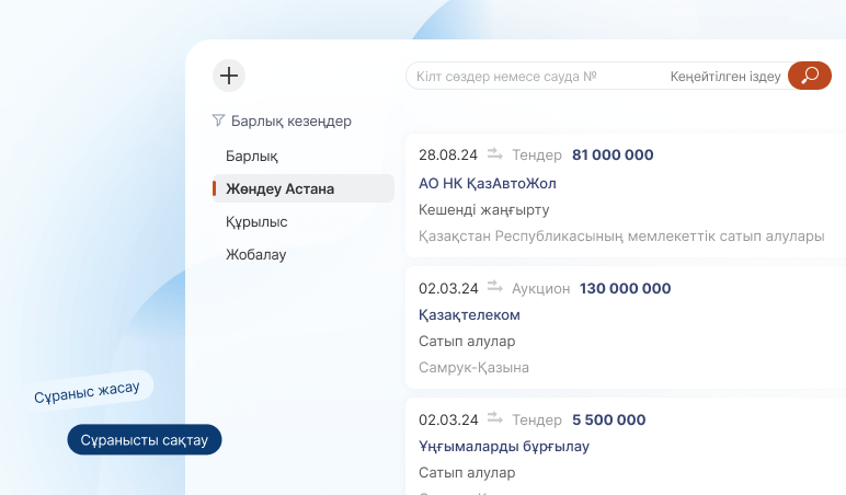 Іздеу үлгілері, жаңа тендер туралы хабарламалар